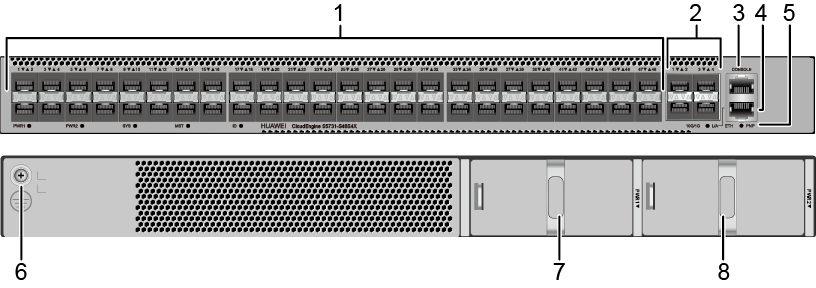 The switch can use a single power module or double power modules for 1+1 power redundancy. Pluggable AC and DC power modules can be used together in the same switch. However, the power modules with natural heat dissipation and the power modules with fan cannot be used at the same time.