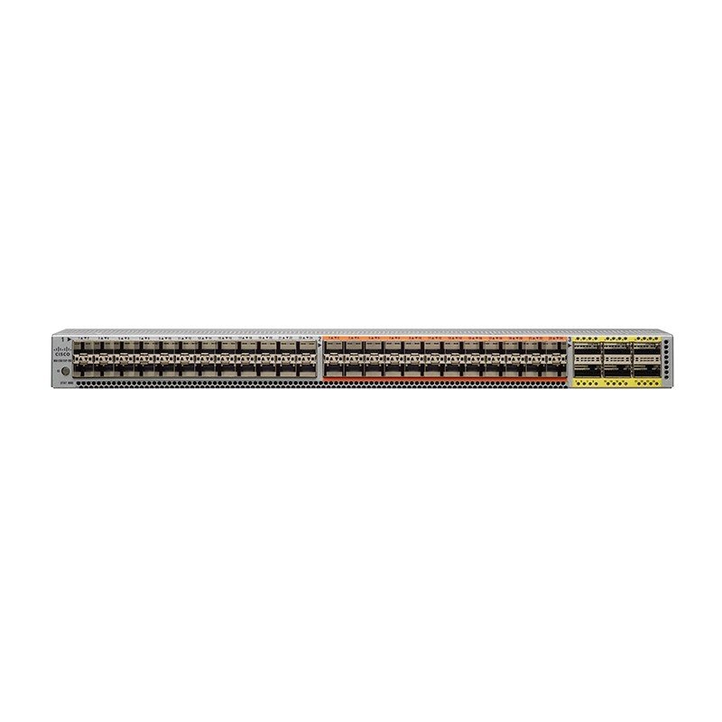 ● 48 fixed 1/10 Gigabit Ethernet SFP+ ports with 24 of the 48 ports being unified, and 6 fixed 40 Gigabit Ethernet QSFP+ ports with 10 and 40 Gigabit Ethernet FCoE support on all respective ports and 2/4/8-Gbps Fibre Channel on all the unified ports