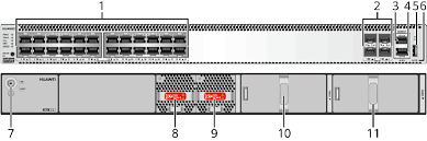 The switch can use a single power module or double power modules for 1+1 power redundancy. Pluggable AC and DC power modules can be used together in the same switch. However, the power modules with natural heat dissipation and the power modules with fan cannot be used at the same time.